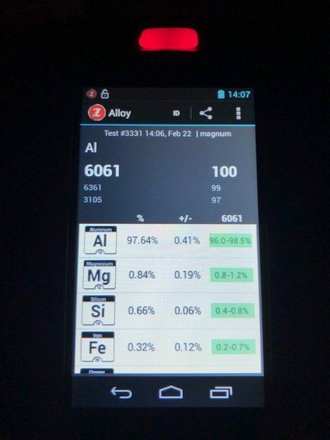 Our test equipment is state-of-the-art. We have four handheld computer-based X-ray metal identification analyzers, plus two handheld spank test analyzers for aluminum. We can test for many grades of Stainless steel, Aluminium, Nickel, and Cobalt Alloys, Titanium, Copper and Brass, and High-temperature alloys.